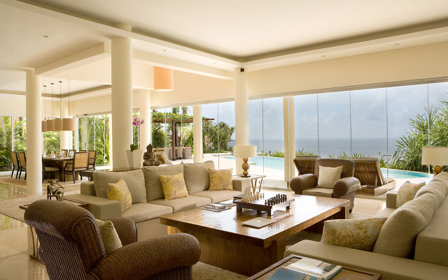 Use as a primary enclosure for frameless windows in existing buildings or new construction, or as a secondary enclosure for an above guardrail enclosure system at lanais.